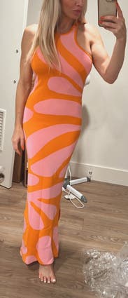 I adore pink and orange hugs the body perfectly. Bra selection was a little tricky (I used boob tape)