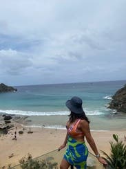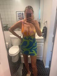 Had to put a bra underneath bc the top is roomier than the bottom. But the colors and cutouts are so fun! Perfect for a date night in Miami.
