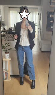 I rented this to wear with jeans and did not end up wearing it. It was a bit large in the chest and shoulders for me.