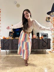 I wore this to the premiere of the Hunger Games sequel to match the character of Lucy Gray Baird and it was a hit! The top was light and comfortable. It could’ve felt a litttttle frumpy around the middle, but my skirt and belt hid that part.