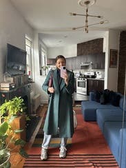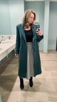A coat that can make any outfit look put together. Has a tailored fit so isn't great for layering - I will size up next time. Not super warm for walking around outside in NYC winter all day, but works for short spurts outside.