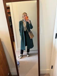 This is why I love RTR. I would never buy a dark green coat, but loved having it. Lots of compliments. Wore it for St. Patrick’s day too.