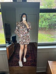 When it arrived I thought the colors where a Fall vibe but I wore it with white boots and a white little purse and put on red lipstick, it totally turned into a perky spring/summer dress! The ruffles are cute, and the short length makes it flattering. I usually wear M but size S was loose on me, so size down.