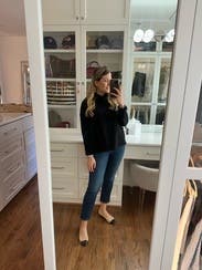 Cute cut, can’t go wrong with black - slimming & not a bit itchy. I wore it to dinner, work, and hanging around the house. An essential piece!