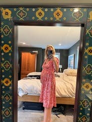 This was a miss for me. The bust area was super baggy, and the elastic underneath was tight. The skirt fit correctly on my 29-week bump, and I’m usually a true medium. I don’t think a different size would work. The awkward fit combined with the busy pattern made me feel like a rug or a table cloth. Returned without wearing.