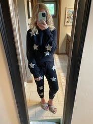 This was cute and cozy and I wore it a lot but it didn't wow me. The pants were tight but thick- i.e. not figure flattering. Maybe sizing up would have helped. I did size up in the top and am glad I did because it was short and tight.