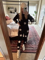 I did end up wearing this around the house a ton. Super cozy material. Fun star print. But a good inch too short for me.