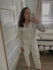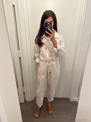 This jumpsuit is so cute but INSANELY thin linen material. Even wearing nude undergarments, I didn’t feel comfortable wearing this as it’s so thin. Such a shame because it’s adorable!