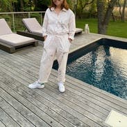 I loved this jumpsuit! It’s flattering because it’s cut well and a thin fabric. I loved pairing with a sandal or sneaker.