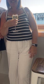 This too was cute. Wore with jean shorts, although I think it would look cuter with white shorts/pants bc of the nice crisp navy and white. It’s a thicker fabric and a lot shorter than I expected it to be