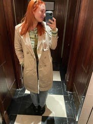 I paired it with a mustard yellow v neck one time, a sage colored round neck the next time and an army green the next time. It pairs well with so many colors. It was good for the early fall in the Northeast. Worked well with strait-leg jeans and wide-leg jeans and sneakers. Now a wow piece, but an easy piece.