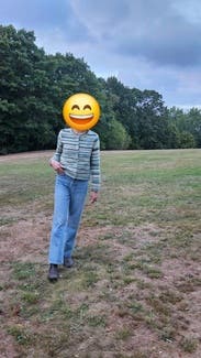 Was a little big around the shoulders. The horizontal lines did not do anything for me, but loved the the colors and nice for a casual outfit