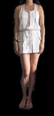 White stripe (56% Cotton, 44% Polyester). Top. Sleeveless. Square neck. Front button closure. 19" from shoulder to hemline. Imported.