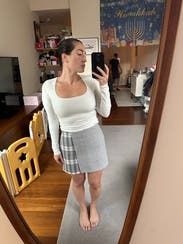 This skirt was coming apart at the pleat so it made the pleat a bit more aggressive. It's cute though if you want something short!