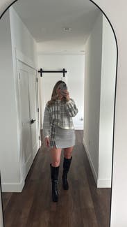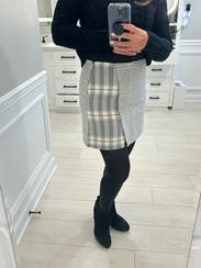 This skirt was so, so low rise that I could only see it with the matching sweater. Anything else looked weird. It is a cute skirt, very, very short which I didn't mind, but also only worked with knee high boots for me. So cute, but a very specific item that doesn't allow for many variations.