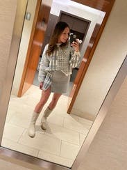 This sweater is ridiculously cute. I wore the matching skirt to work and it was a bit too shift.