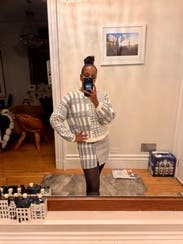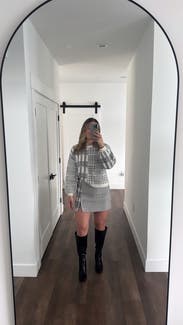Wore with the matching skirt and looked great. The sweater has some little balls from use. I wore it for a very casual day out but if you are looking to look sharp then this is not in the best form.
