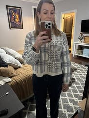 Slightly cropped length was very flattering. Thick, warm knit while still being soft (which I think is rare). And since it is slightly oversized you still can get a breeze to avoid feeling too warm.