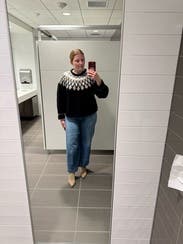 Usually sweaters like this look a bit off because I have a bigger bust, but this was so comfy and warm and fit perfectly. I was able to dress it up and down with no problems.