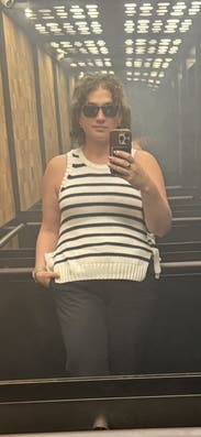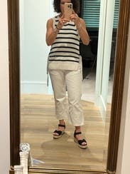 Good quality but not quite my style! It's giving coastal grandma. The sleeveless sweater combo is tough to match to the weather.