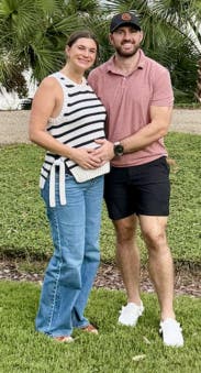 sized up to wear 8 months pregnant. it's so cute but definitely a heavy knit so check the weather when you wear it.