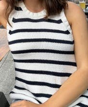This nautical-inspired striped knit vest by Splendid offers a casual yet chic vibe. Pair it with wide-leg trousers for a relaxed, sophisticated look.