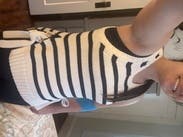Blue stripe knit (60% Cotton, 40% Acrylic). Top. Sleeveless. Crew neck. Pull-on style. 22" from shoulder to hemline. Imported.