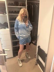 I was kind of a hater on this brand (have walked past it in Nordstrom more times than I can count), but renting this set changed my mind. Definitely rent as a set, not the sweatshirt individually. There is this really cool feeling brushed cotton inside that’s super soft like fleece but not hot like fleece. I was able to wear this outfit in Texas heat (granted it’s only June but still…) and was fine. I don’t think you need to size up because the waistline of the sweatshirt is pretty straight, so it doesn’t “drape” in an oversized way but I still like my sweatshirts longer. I bought it!