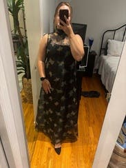Absolutely adored this dress. The backup size weirdly only came with the slip underneath, but luckily the MR fit me like a GLOVE. With heels it wasn’t too long which was amazing. Wore it to a surrealist black tie party with a white scarf and got so many compliments.