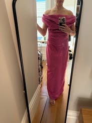 This dress was the most successful rented item yet! I have a bit of a postpartum belly and was struggling to find a dress for a wedding that I felt good in. This dress killeddddd it! There is an inner corset so it's a little difficult to zip up but once it's on, it's amazing. Such a flattering fit and the prettiest color pink!