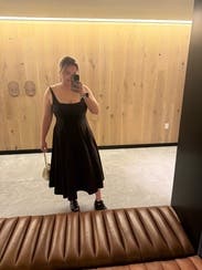 I honestly felt so beautiful in this dress. However, there were some fit issues for me? It was tight in the chest (which allowed for comfortable no-bra wear), but the straps were weirdly too big? I'd find them slipping down throughout the day. If it weren't for that, this dress would have stayed in my closet!