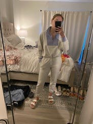 I rented this piece with the matching sweatshirt, and really enjoyed wearing it around my apartment! I didn't wear the set out in public- but it is 100% cute/put together enough to run errands in