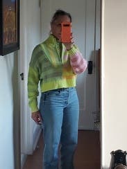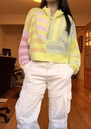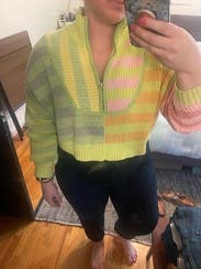 I absolutely adore this bright, chunky, comfortable sweater! Love the crop, very comfortable and easy to wear. I bought it!
