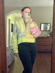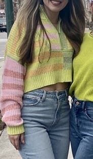 Love the colors! More of a summer/spring/fall sweater since it’s lightweight. The crop was nice too- I didn’t feel like it was too short.