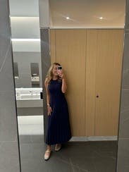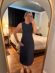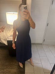 This dress was a standout — the rich cobalt color was bold and eye-catching, and the pleated skirt gave it movement and sophistication. I wore it for a groundbreaking ceremony, and it struck the perfect balance of professional and powerful while still feeling feminine. The fit was comfortable and flattering, making it easy to wear through a busy day. It’s the kind of dress that makes you feel instantly confident and ready to lead.