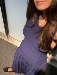 Flattering for my postpartum stomach but a tad too long for my 5’4” stature.