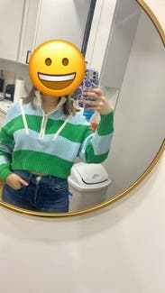 A stylish option for a summer knit. It intentionally is oversized. Beware it runs short (but still covers waist). The color combo is so fresh. Really enjoyed this rental.