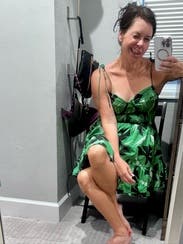 This dress was flirty and fun, but not immature. That’s the only way I can describe it. At 56 I was wondering if I’d look “girlier” than I’d like in it. However, the dress was as well made as it was cute. It has a slip, tulle, and fabric skirt. The bodice is very forgiving with its elastic and structured bust. I used a small belt for a bit more definition. I’m a C+ cup and it fit well. @lesliemaxie88 thinks you’re going to look fantastic RTR sister! 💚