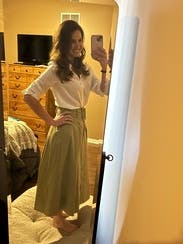 Unique skirt for work but wasn't in love. The belt buckle also did not want to sit straight, which was annoying.