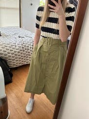 Love a skirt with functional pockets! The belt is a very silly design though - it doesn't stay fastened and I was constantly adjusting it. Otherwise, a great piece for work.