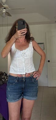 This top is adorable—lightweight, breathable, and perfect for hot weather. The eyelet fabric and corset seaming give it a really polished look. It was a bit tight in the bust for me, so I probably could’ve sized up but even then I would have still had the same issue which was the straps. They constantly slipped down and didn’t stay put, which made it a little frustrating to wear. I think this would work better on someone with a smaller bust. Overall, really cute but not the best fit for fuller chests.