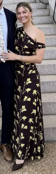This dress was nice for a late November wedding but was fussy to wear. It ran very small to me through the middle but somehow the draped neckline was quite loose and moved around a lot as a result. Would’ve been better if there was a little more structure across the shoulder and dropped sleeve. Loved the look of it, just wasn’t as great in application on me.