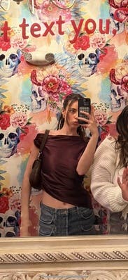 Styled it so many ways. A really classy top perfect for "going out" vibes in the color of the moment. Wish I could keep!