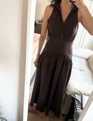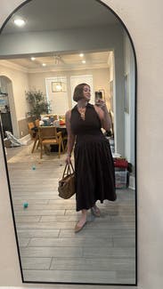 I loved this dress!!! I think it is so flattering in person and the brown color is super chic. Only gripe is that I looked wide in a lot of the photos, but I think it's just because it photographs weird. It was very slimming and flattering in person. I received so many compliments!