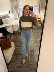 Loved this quirky sweater. I have it tucked in here. I wish It had been longer. Will rent again for sure.