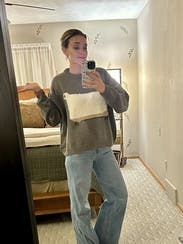 A love a good oversized sweater for the winter. This is the perfect one. It’s a high-quality, soft, heavy knit that actually isn’t too bulky. With great neutral colors that make it easy to style. And a cute sheep that draws compliments galore.