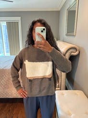 Oversized is one thing, but this is huge lol I’ll try renting again in a size medium. It’s very comfy and doesn’t itch. Very soft lamb sweater for my little lamb.