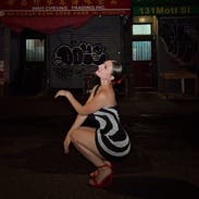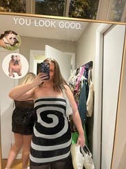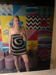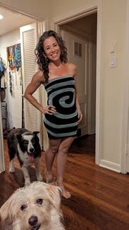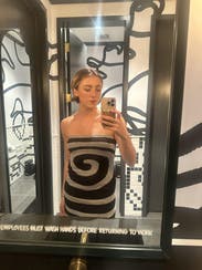 This sassy, swirly dress was perfect for the opening of an art installation. It fits snug, but stretchy and flattering. IG @bethielife