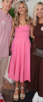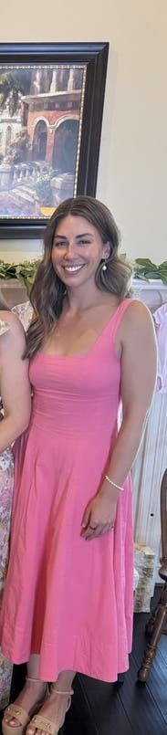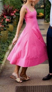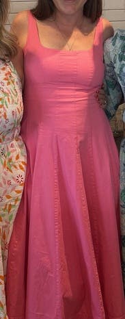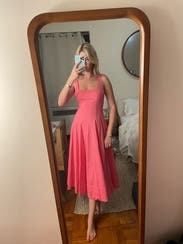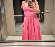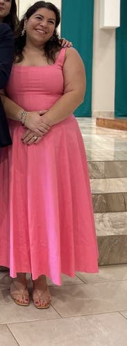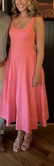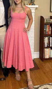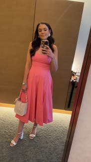 I wore this dress to my valentines themed bridal shower and loved it so so so much. The color is even more beautiful in person and the fit and fabric are amazing. Perfect for a daytime event and is perfect for spring and summer.
