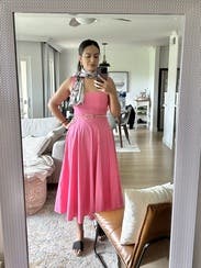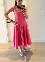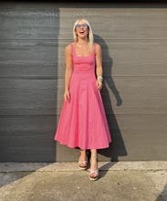 Total summer Malibu Barbie vibes. Great for work or out at night. I love the length of it, makes it more formal and professional bc it’s so long and has a lot of fabric so it’s a fun fit. Wish it had pockets but also just really a beautiful high-quality piece